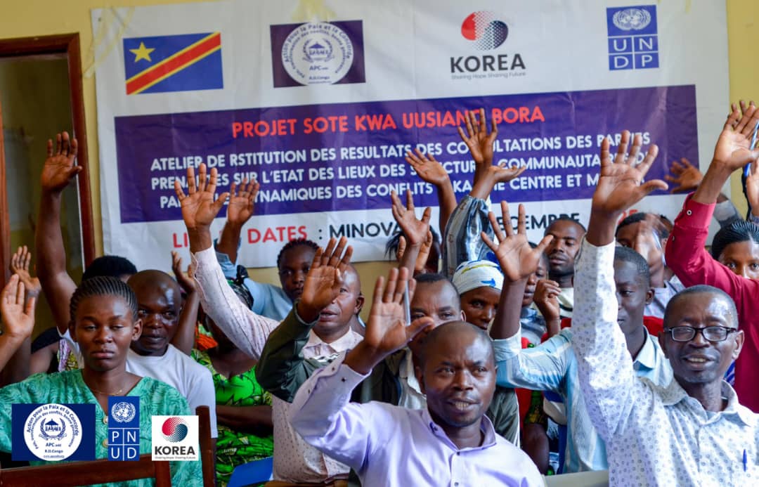 Deux ateliers organisés les 28 novembre et 1er décembre 2025 ont réuni les communautés de Kalehe centre et de Minova (Sud-Kivu) pour valider les résultats d’une enquête sur les causes des tensions qui, depuis l’avènement de la guerre, minent la cohésion sociale entre déplacés, retournés et familles hôtes. Cette démarche s’inscrit dans le cadre du projet « Sote kwa Uusiano Bora », porté par l’ONG Action pour la Paix et la Concorde (APC) avec l’appui du PNUD.